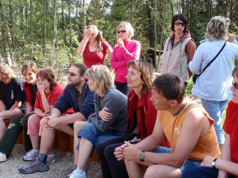Na Relaxe nás přivítalo krásné slunečné ráno, posnídali jsme, šupli do batůžků svačiny, balíme materiál, nasedáme do aut a v koloně odjíždímě směr Rabštejnské skály:-) Parkujeme auta, cestu nahoru už musíme zvládnout po svých. Vyrazili jsme sice v davu, hezky za sebou, ale přeci jen převýšení několik stovek metrů bylo znát a někteří z nás se propadli jaksi nakonec naší početné výpravy ( včetně mně :-)),byť jsem to okecávala tím, že to "čekuju" zezadu :-)) Konečně jsme na místě. Zkoušíme vysílačky: "ručník volá mýdlo", " mýdlo slyší" a rozdělujeme se na dvě skupiny. První vyráží společně s Lídou na Rabštejnskou vyhlídku, druhá s Kubou lézt na skály. Cestou na vyhlídku obdivujeme okolí a hlavně přítomné horolezce. S údivem přihlížímeme a nevědomky nahlas komentujeme:-):-) ( Fakt jsme vám nechtěli radit :-):-) Druhá skupina si mezitím zkouší lézt po skalách, střídají se při jištění, fotíme, točíme a vůbec si ten krásný den užíváme. Balíme materiál a scházíme k hospůdce. Zde se žije na vysoké noze...a to doslova :-) Vychutnávat si pivo na lavičce, která je asi tři metry nad zemí...malé občerstvení přišlo vhod a teď nás čeká příjemná cesta...z kopce dolů. Nasedáme do aut, vracíme se na Relaxu a těšíme se na pozdní oběd. Chvíli si dáchneme a už jsme zase v pohybu. Doháníme co jsme v pátek nestihli, střídáme se na vysokých lanech a lezecké stěně. Zájemci pak vyráží se Šouvitem na paintball: Výklad o paintballu, kde a kdy se vzal, formy her, zbraně, střelivo, bezpečnostní pravidla, nafasování zbraní a střeliva, rozdělení do týmů, tajná domluva strategie, rozmístění po herní ploše a silné zvolání: "Hra". Statečně zasaženi, jako vítězové i poražení se vracíme zpět na Relaxu.